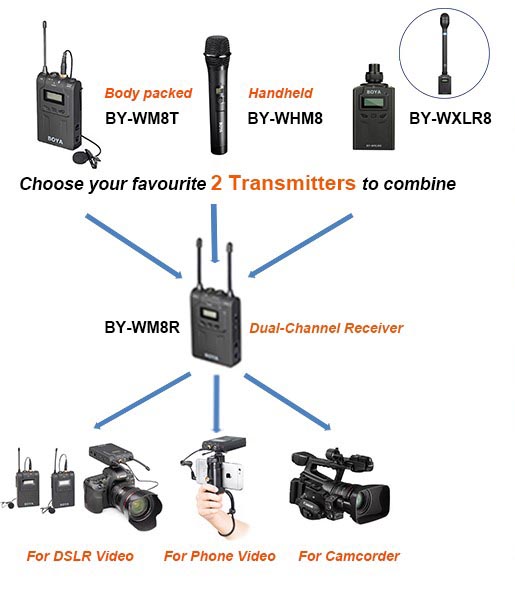 • BY-WM8 Dual-channel UHF Wireless Microphone